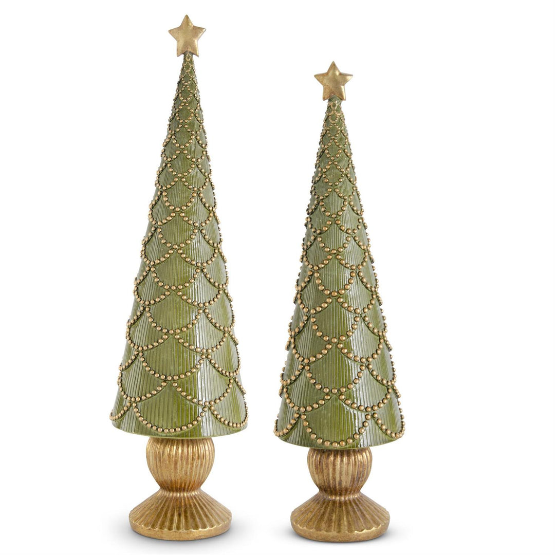 Set of 2 - 22.75"-17" Green Resin Trees with Gold Scallops