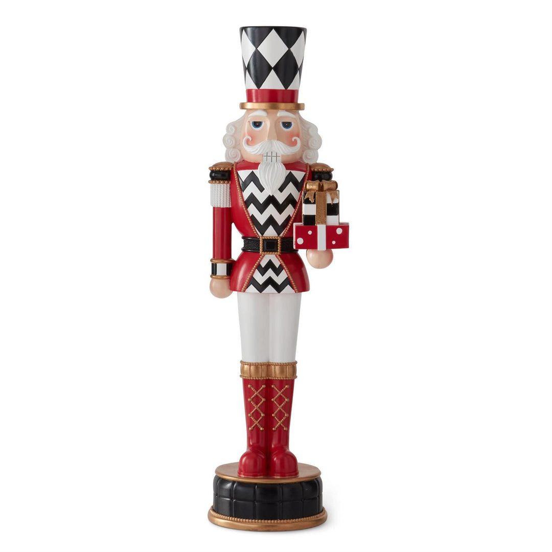 23.5" Red and Black Check Harlequin Nutcracker with Gift