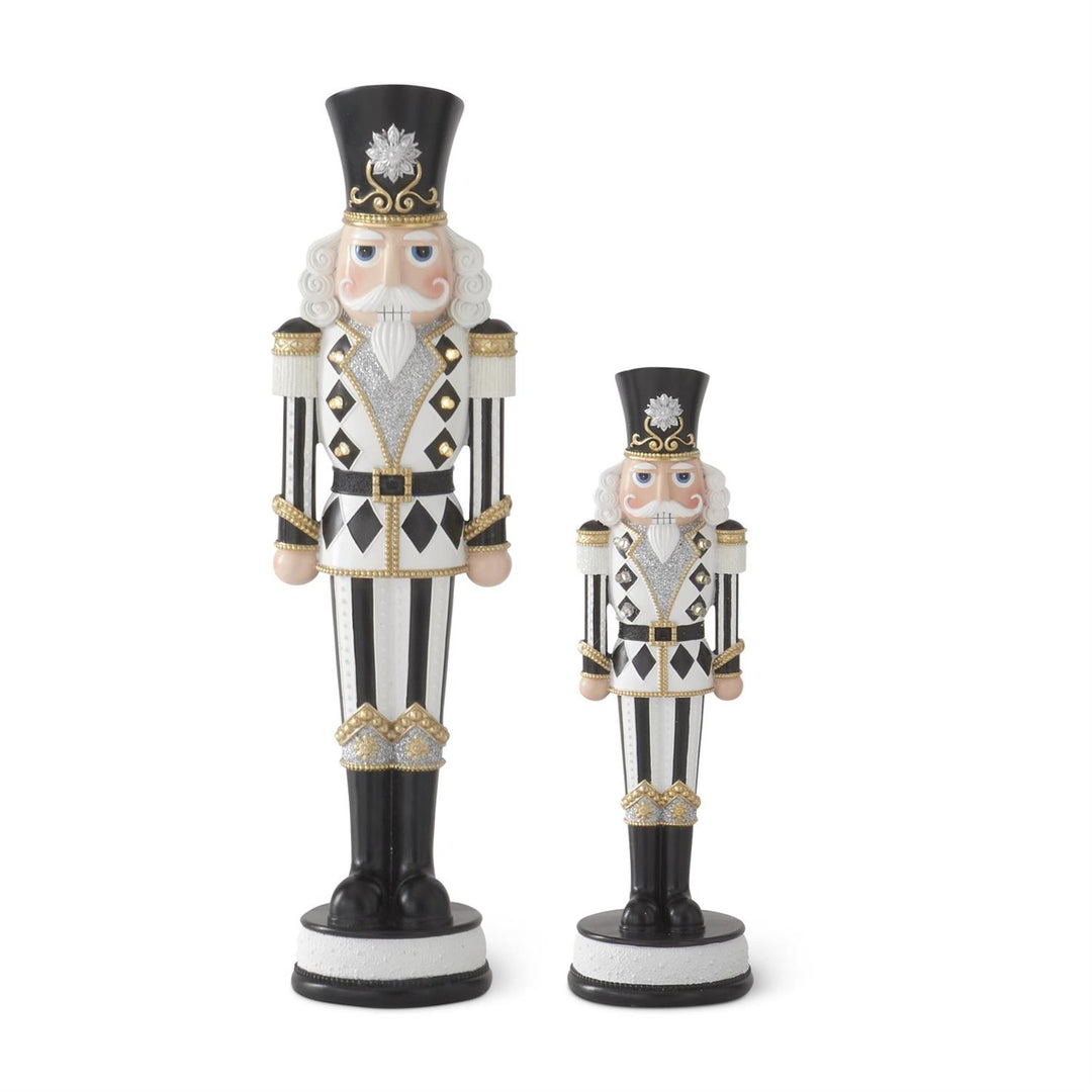 Set of 2 - 19.75"-13.25" Black and White Harlequin Check LED Nutcrackers