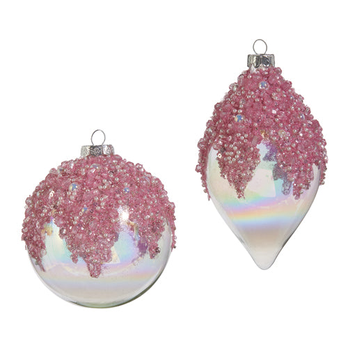 RAZ 4" Pink Beaded Ornament - Set of 2