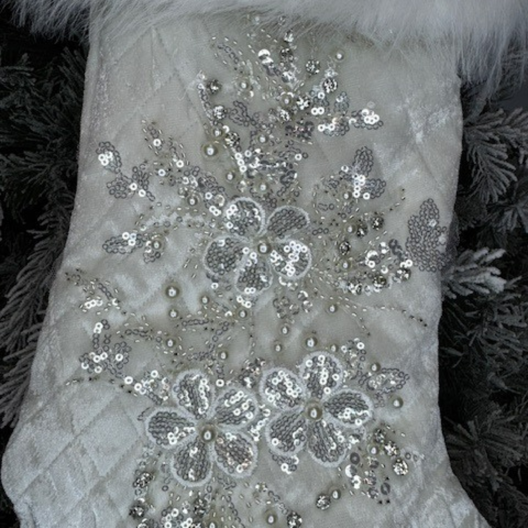 Direct Export 24.5" White Velvet Jewel Fur Stocking