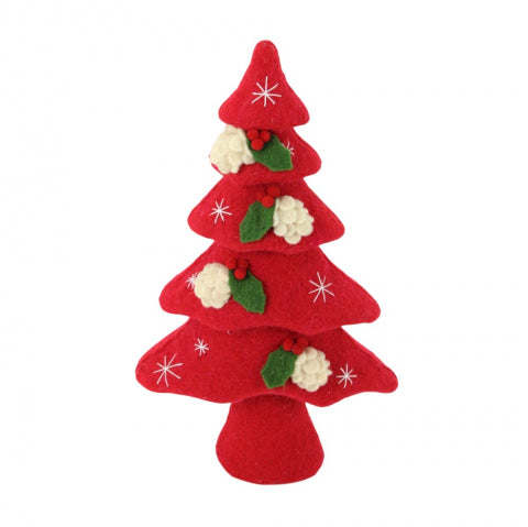 Direct Export 17" Red Felt Christmas Tree with Holly detail