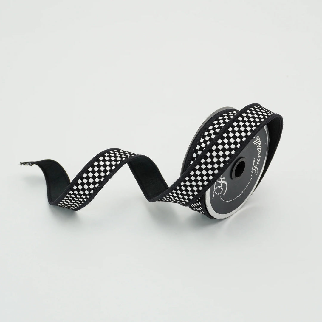 Farrisilk 1" X 10 YD Mini Checks Black/White Wired Ribbon