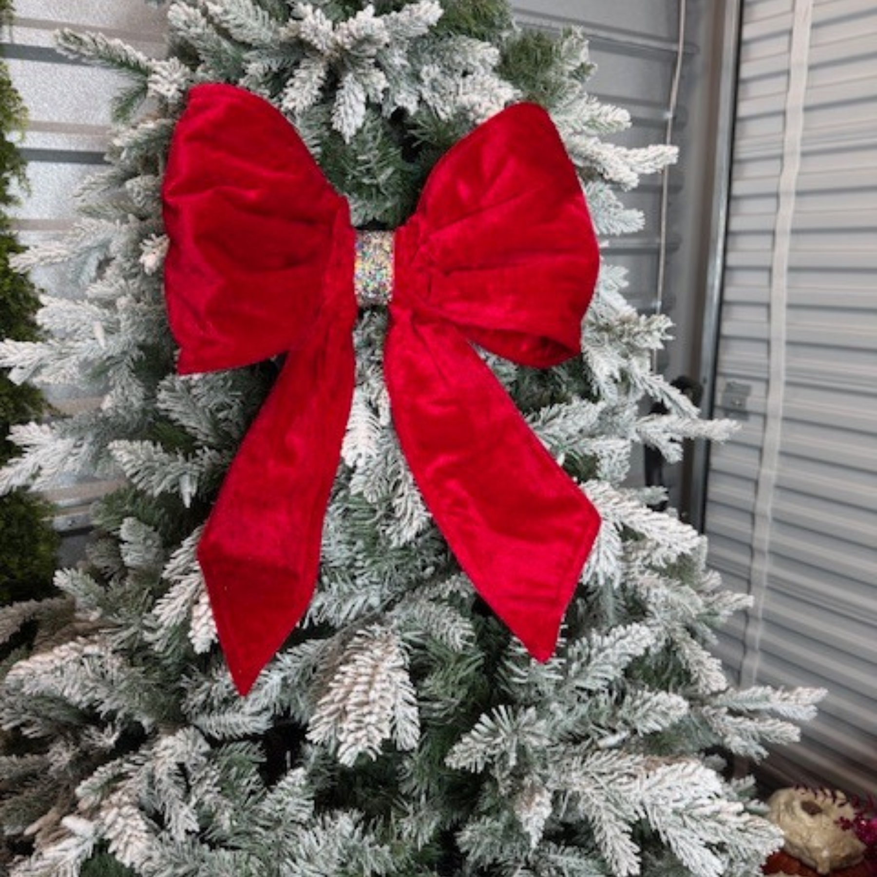 Farrisilk 11" x 9" Red and Gold Velvet Geode Bow