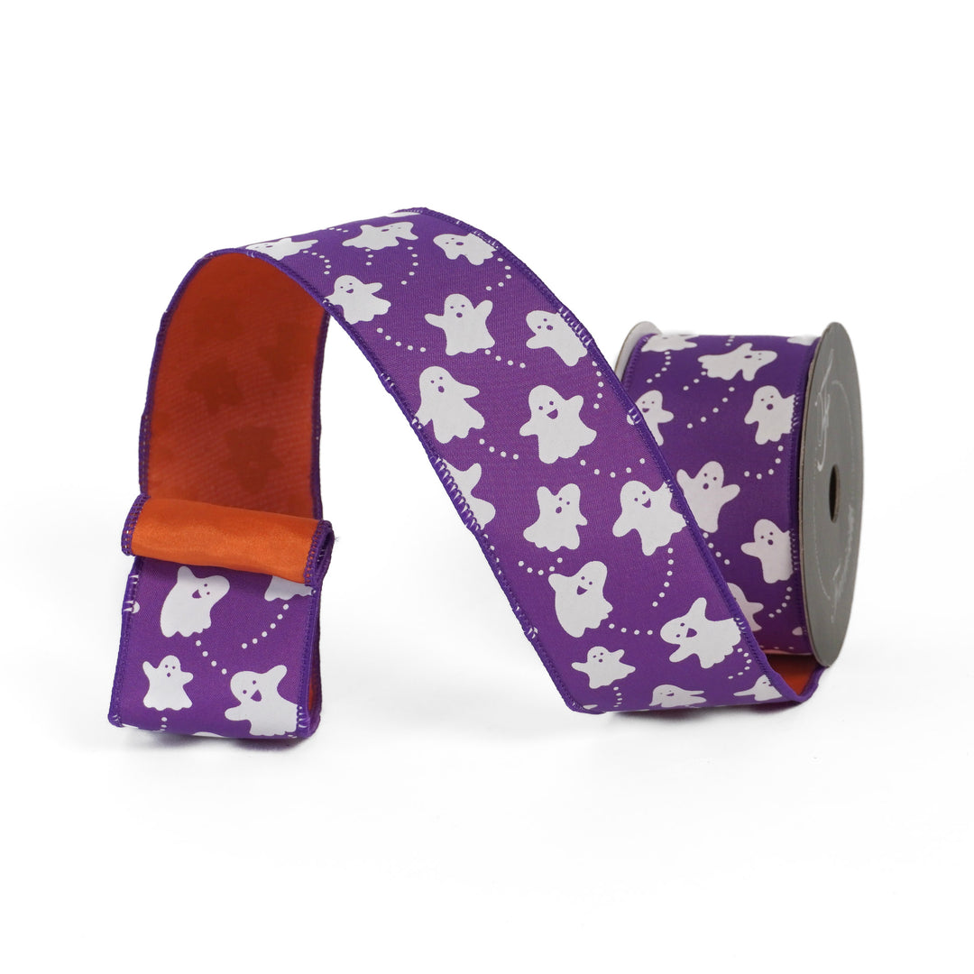 Farrisilk 2.5" x 10 YD Purple Happy Ghosts Wired Ribbon