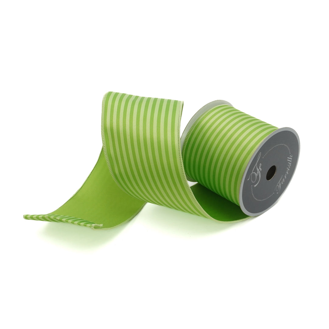 Farrisilk 4" x 10 YD Monochrome Stripes Wired Ribbon in Lime Green