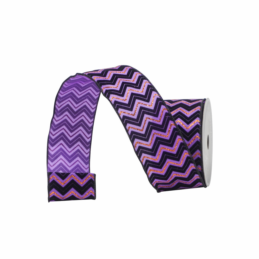 Farrisilk 2.5" x 10 YD Purple and Black Creepy Chevron Wired Ribbon