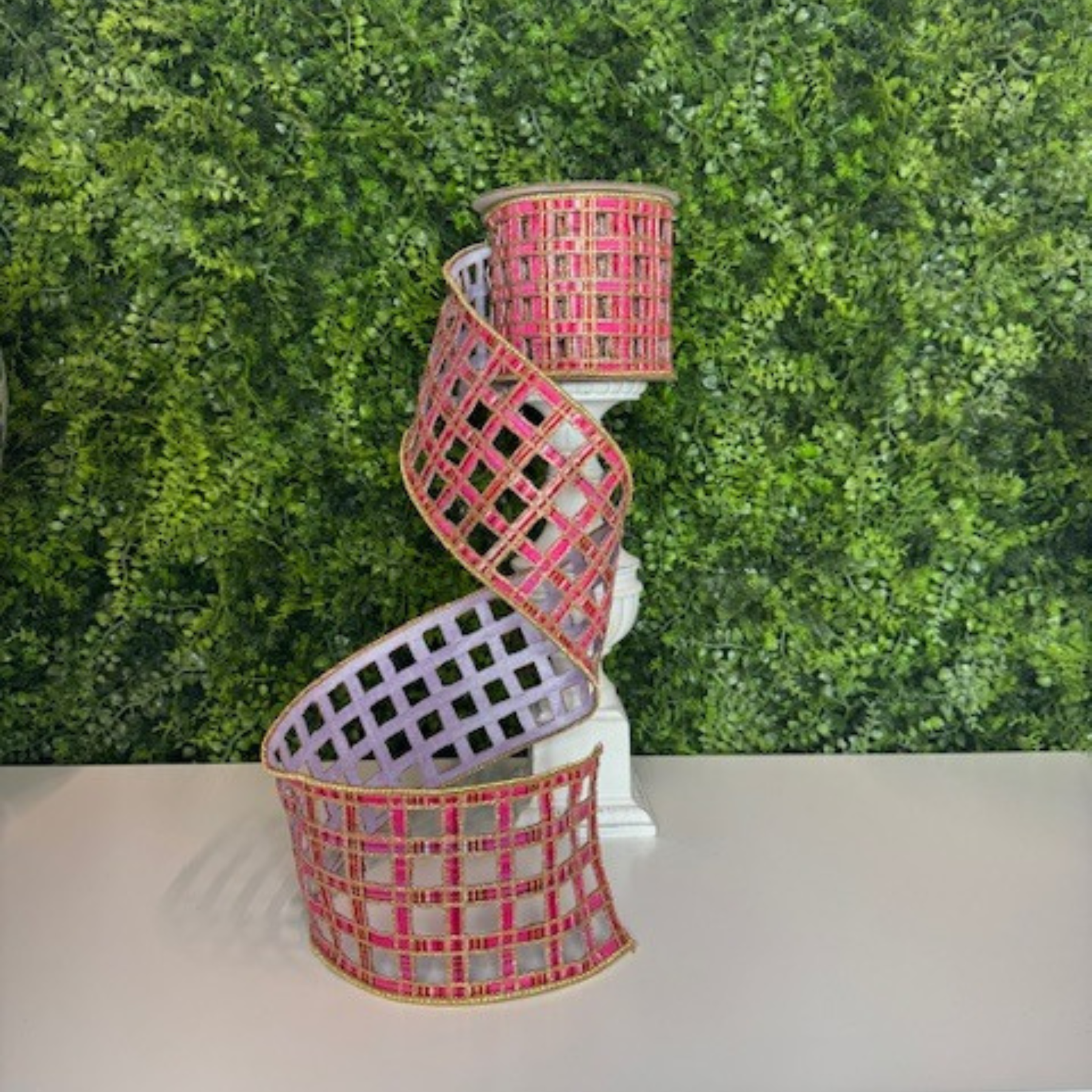 Exclusive Farrisilk 4" x 5 YD Pink and Lavender Window Plaid Wired Ribbon