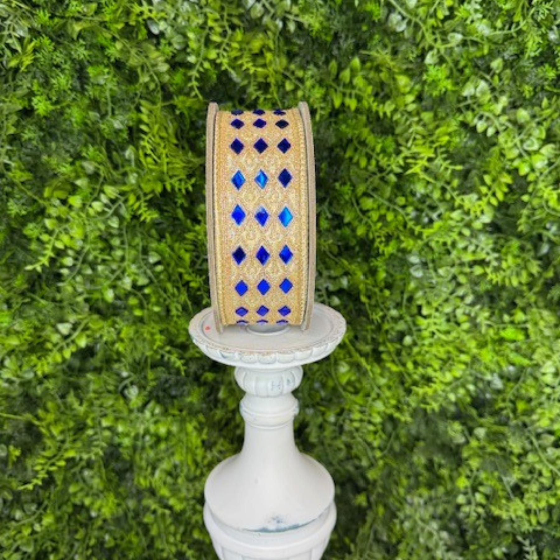 Farrisilk 1.5" x 5 YD Sapphire Blue and Gold Crystal Trim