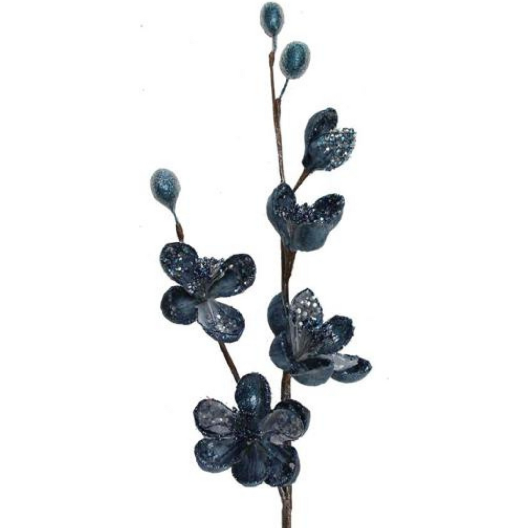 Regency 24" Velvet Bead Sequin Magnolia Stem in Midnight Blue