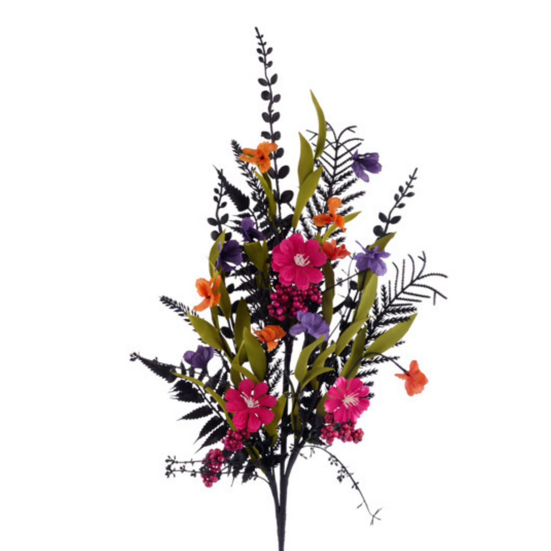 29" Flower, Fern and Berry Spray in Hot Pink, Orange and Purple