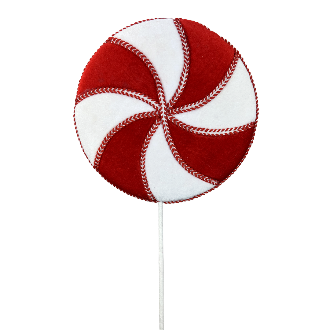 29" Red and White Velvet Lollipop Spray