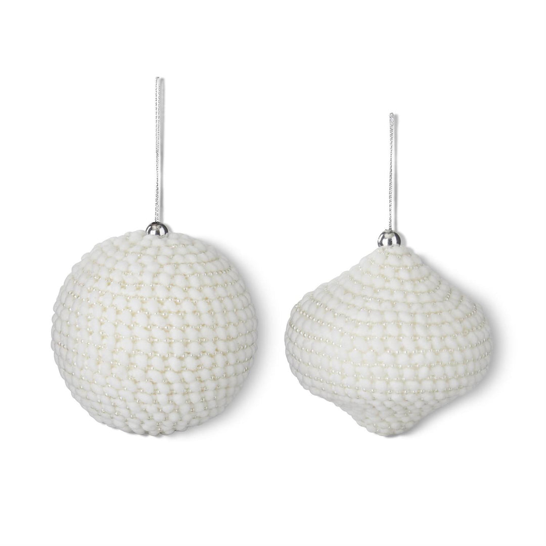 Set of 2 - 4.25"-4" Assorted White Beaded Ornaments - one of each Style