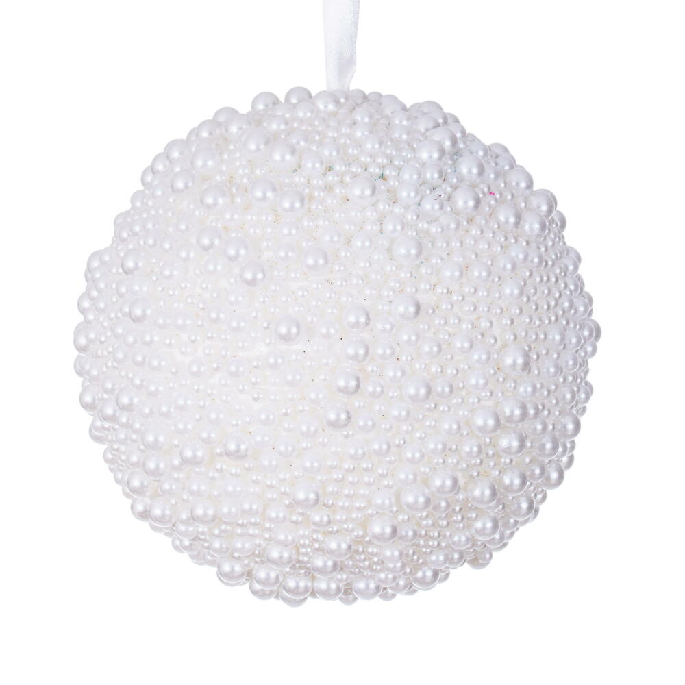 RAZ 4.75" Ivory Pearl Embellished Ball Ornament