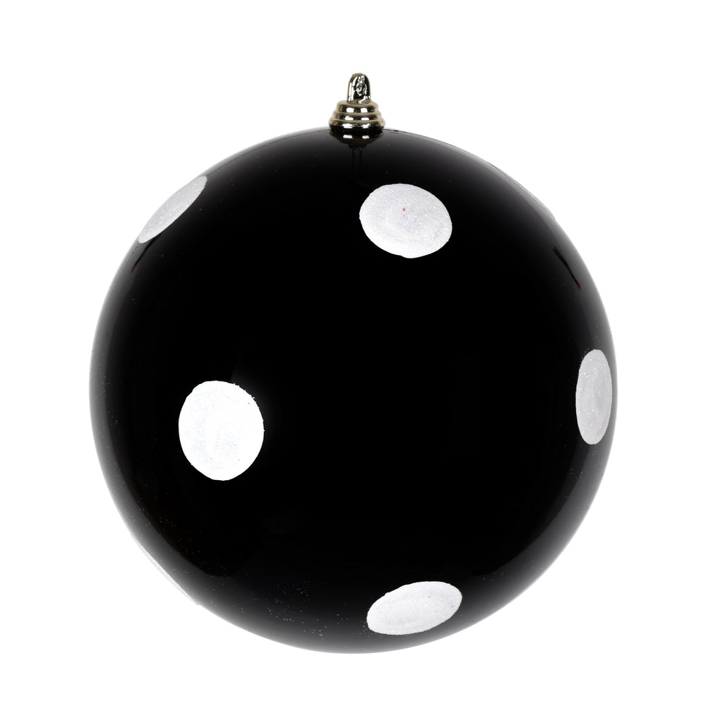 Vickerman 6" Black Candy Ball with White Polka Dots
