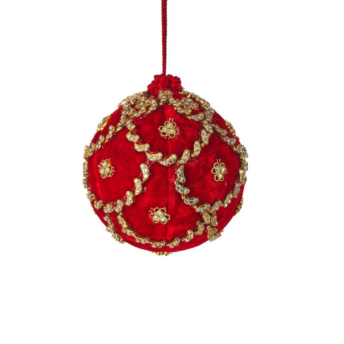 Regency 4" Red Jeweled Scalloped Velvet Ball Ornament