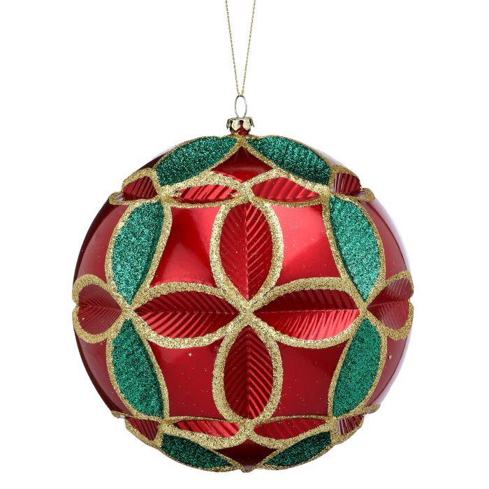 Regency 5.9" (150 mm) Red, Green and Gold Fluerette Ball Ornament