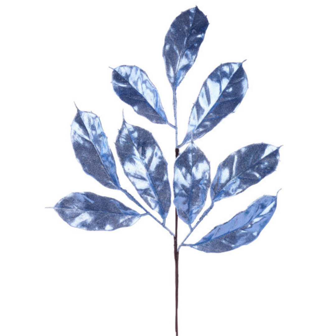 21.5" Smoke Blue Metallic Glitter Magnolia Leaf Spray