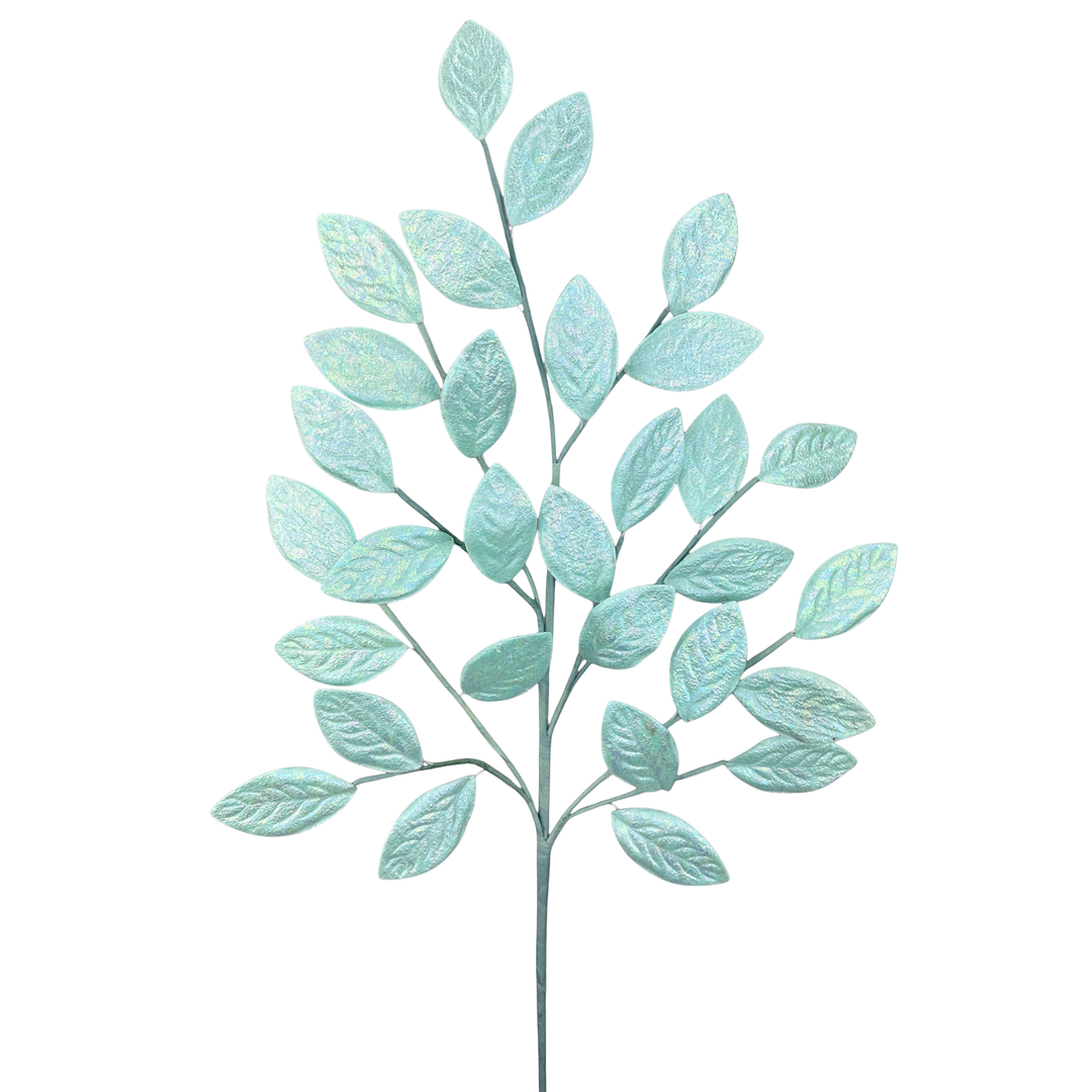 30" Blue/Green and Silver Foil Salal Leaf Spray