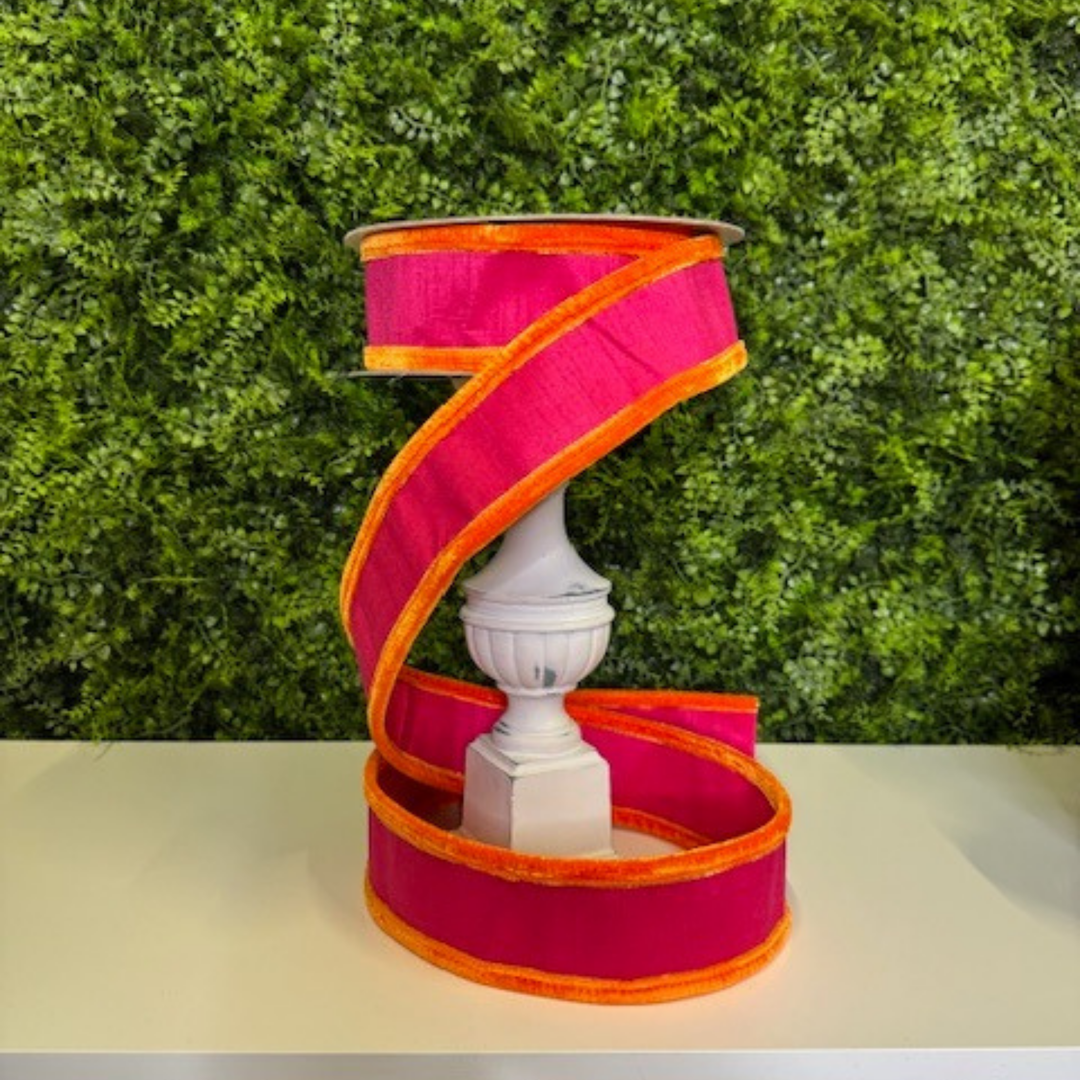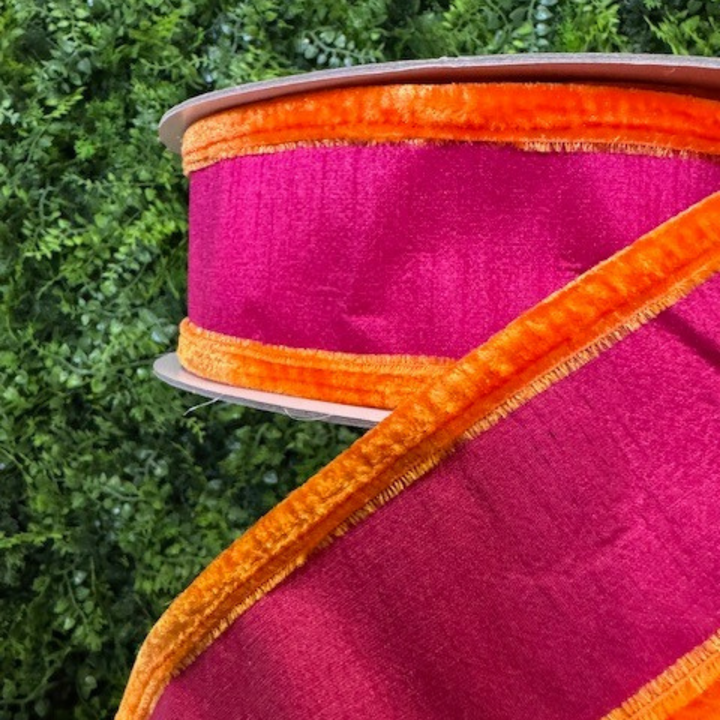 Farrisilk 2.5" x 10 YD Plush Puffs in Hot Pink and Orange Wired Ribbon