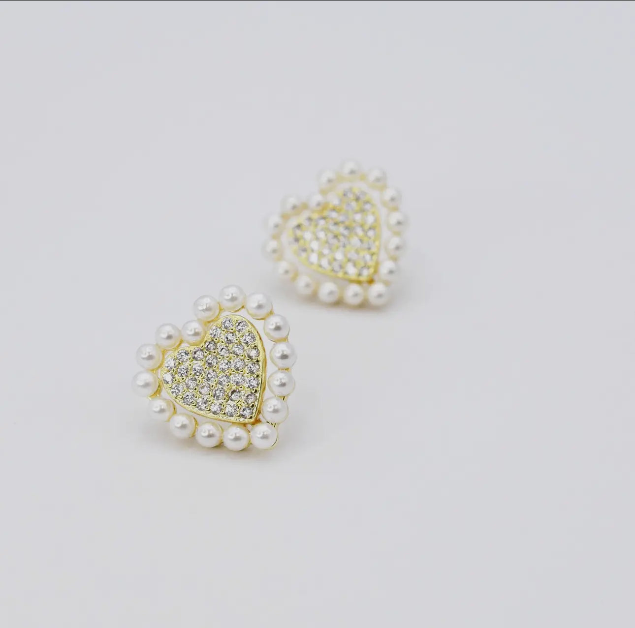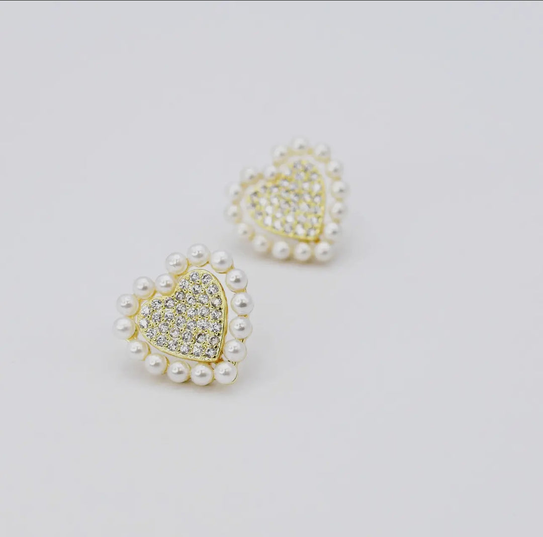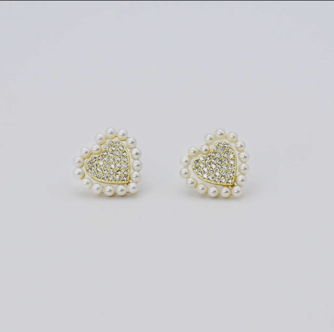 Treasure Jewels Gold Eternal Heart Studes with faux Rhinestones and Pearls